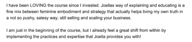 "I started attracting clients already after two weeks of consistently posting content. I don't feel "stuck" in the same way as before. Joella's program created clarity for me."