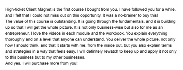 High-Ticket Client Magnet teaches you exactly what to do to turn your content into a client-attracting machine, without overwhelm or guessing.